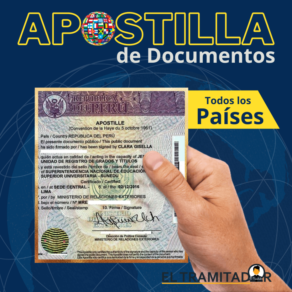 Es un trámite que consiste en colocar sobre un documento público una apostilla o anotación que certifica la autenticidad de los documentos públicos expedidos en otro país. Consecuentemente, los países firmantes del Convenio de la Apostilla de La Haya reconocen la autenticidad de los documentos que se han expedido en otros países y llevan el apostillado.